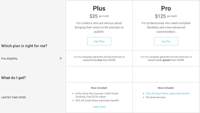 I considered getting Unity Plus, but after checking how much I'd get from discounts on the Assets I want, I wouldn't even make my $35 back in savings, so I'm sticking with Unity Free until further notice. (If revenue passes $200K I have to upgrade to Unity Pro for $125 a month, but if BGP does that well I'll be crying tears of joy and happily fork over that much to Unity as thanks!)